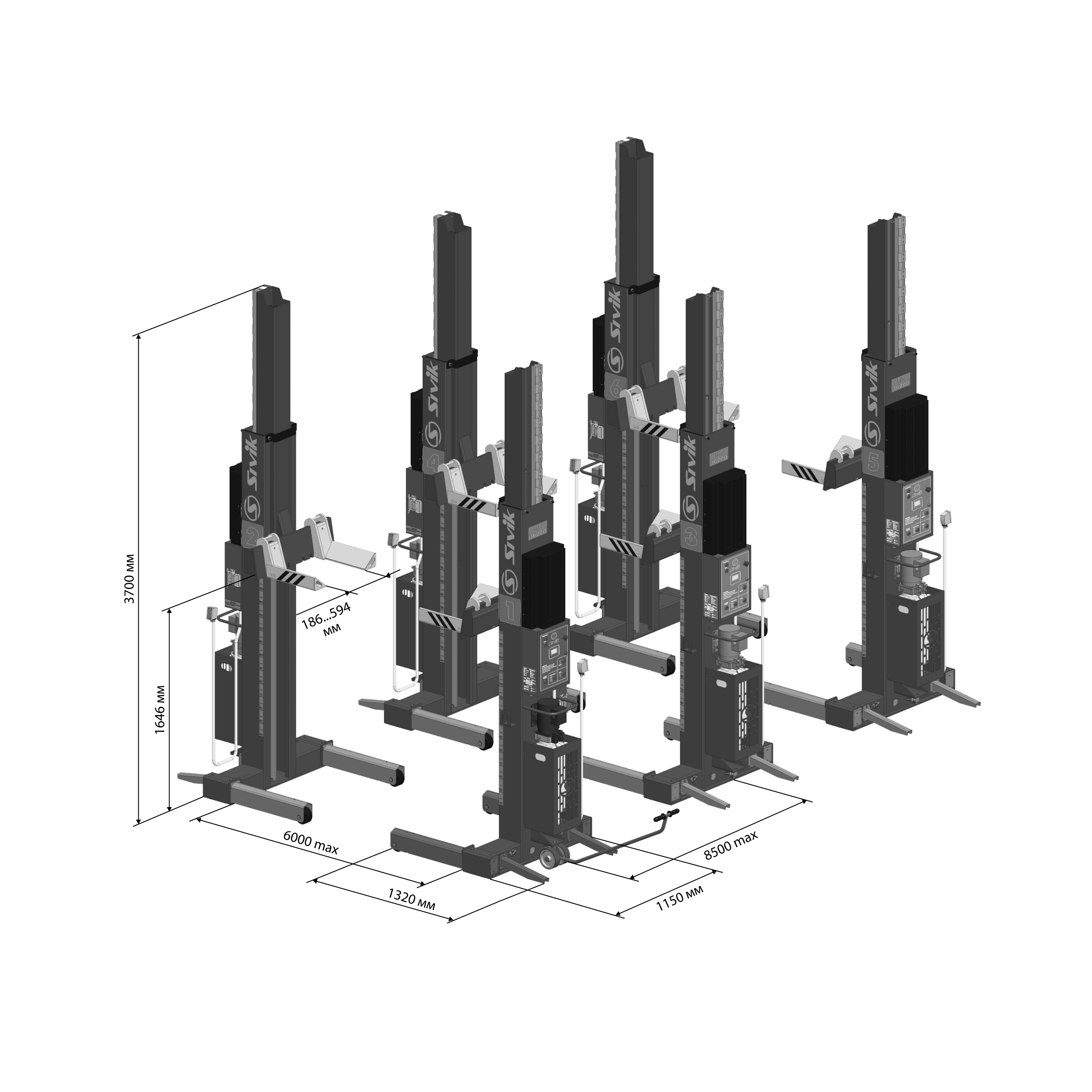 • Высокоточная система синхронизации движения кареток. Разница высоты не превышает 60 мм вне зависимости от нагрузки, приходящейся на каждую стойку.