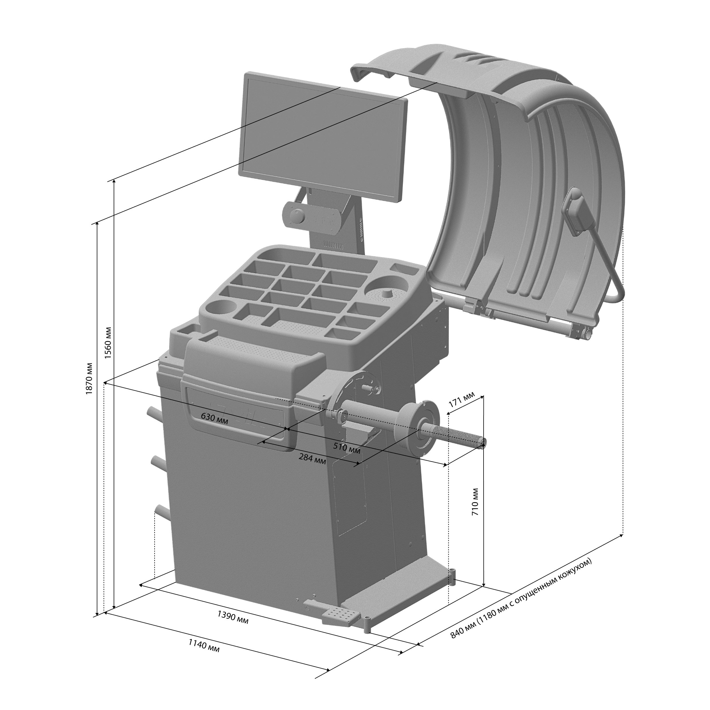 - Синхронная работа станка и подъемника значительно повышает скорость балансировки и бережет здоровье